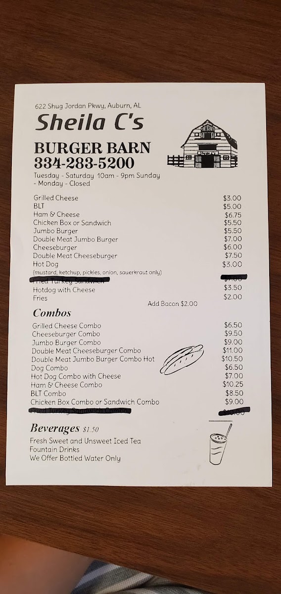 Sheila C's Burger Barn offers a straightforward, no-frills menu that feels just right for a casual meal. The focus is on hearty American classics like burgers, sandwiches, and fries, perfect for anyone looking to settle in with a satisfying, familiar bite. The menu leans into comfort food with simple combinations that emphasize generous portions and straightforward flavors.